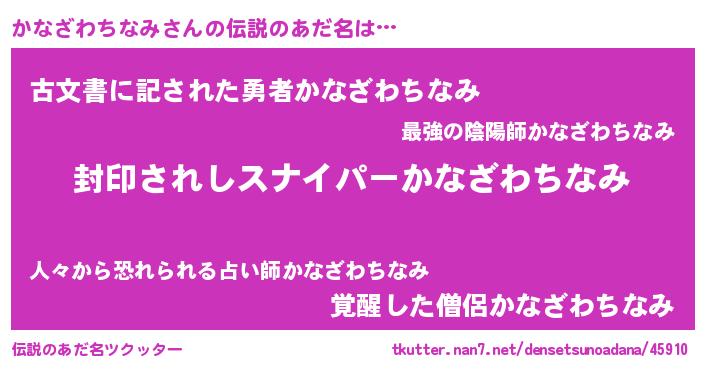 | 胡散臭い通販商品みたいなあだ名 | 『億万長者になれる霊験あらたかなお札…その名も「かなざわちなみ」』 |