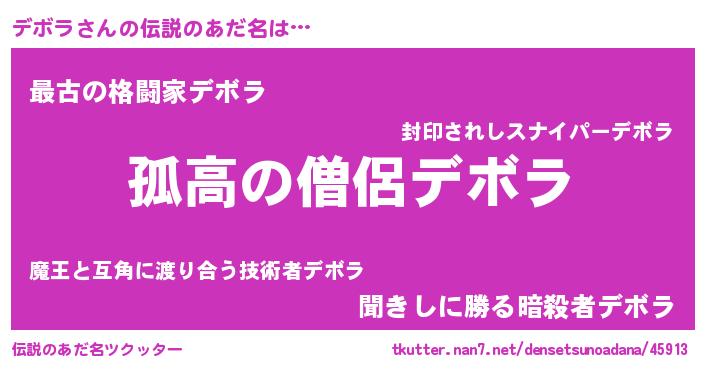| 意味不明あだ名 | 『住所不定無職デボラ(53歳)』『自称デボラ』 |