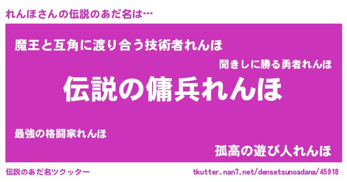 | ヒーロー風カッコイイあだ名 | 『スーパーレンホ』『友情の使者れんほ』 |