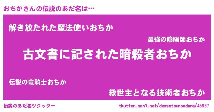 | ヒーロー風カッコイイあだ名 | 『ネオオチカ』『銀牙騎士オチ』 |