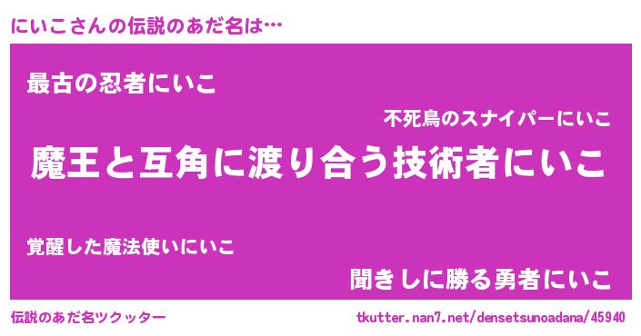 | 欧米人風あだ名 | 『アンジェラ・にいこ』『ダニエルにいこ』 |