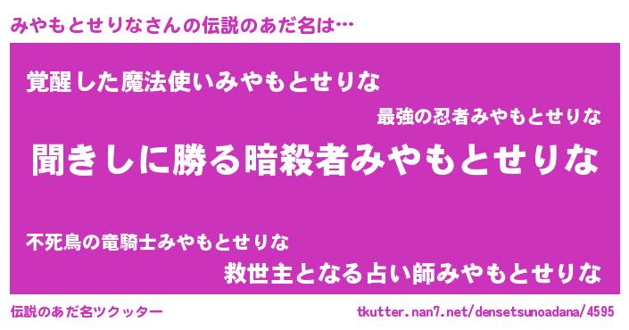 | 意味不明あだ名 | 『永久保存みやもとせりな』 |