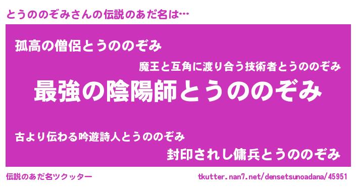 | ファンタジー風あだ名 | 『エターナルトウノノゾミー』 |