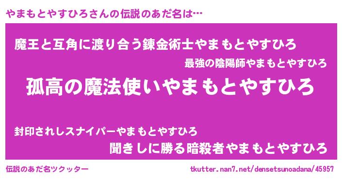 | ヘコむあだ名 | 『やまを』『やまもとやすひろ(苦笑)』 |