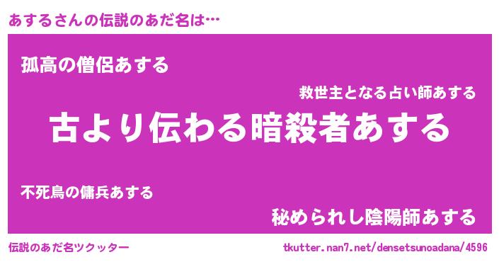 | 男性向けラノベタイトル風あだ名 | 『あするに滅ぼされるだけの簡単なお仕事です』 |