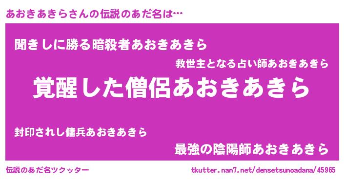 | 意味不明あだ名 | 『とにかく怪しいあおきあきら』 |