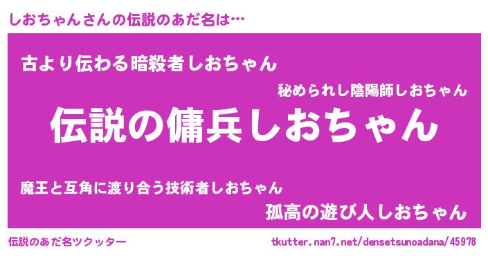 | ヒーロー風カッコイイあだ名 | 『スーパーシオチャン』『ネオシオチャン』 |