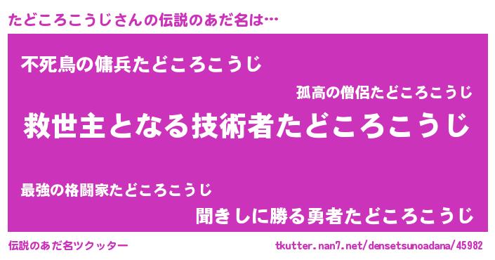 | ヘコむあだ名 | 『たどにー』『たどころこうじ(笑)』 |