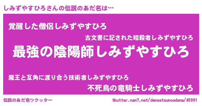 | ポケモン風あだ名 | 『シミズダネ』『ヒシミズヤスヒロ』 |