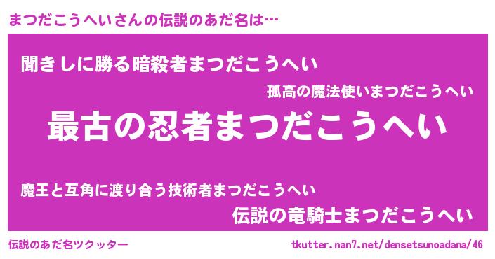 | 意味不明あだ名 | 『自称まつだこうへい』 |