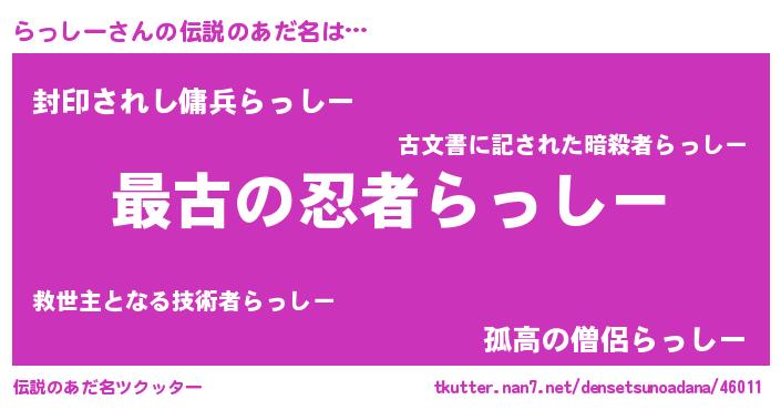 | ヒーロー風カッコイイあだ名 | 『ウルトラらっしーマン』『炎刃騎士ラッ』 |