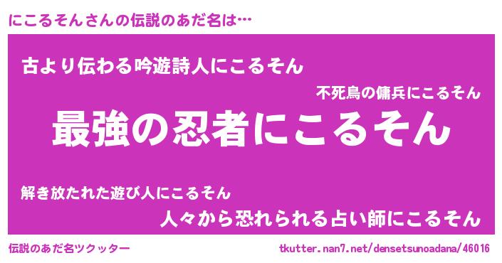 | 意味不明あだ名 | 『自称にこるそん』『永久保存にこるそん』 |