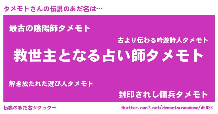 | 男性向けラノベタイトル風あだ名 | 『Re:タメモトから始める異世界生活』 |