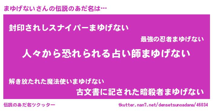 | ヒーロー風カッコイイあだ名 | 『正義の使者まゆげない』『仮面マユダー』 |
