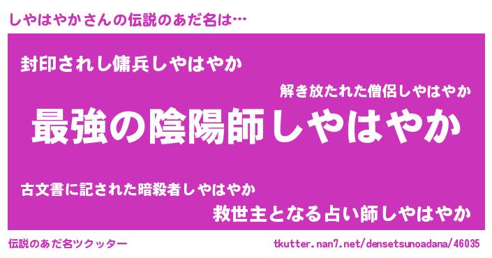 | 意味不明あだ名 | 『しやはやかフォーエバー』 |