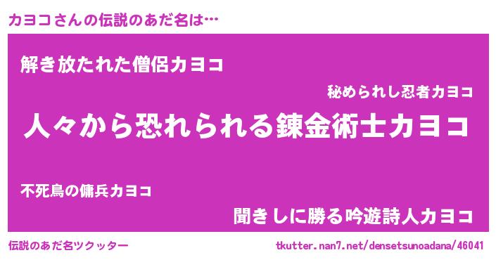 | 意味不明あだ名 | 『眠気覚ましガムカヨコ味』『自称カヨコ』 |