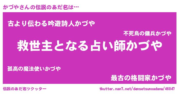 | 男性向けラノベタイトル風あだ名 | 『ノーゲーム・ノーカヅヤ』 |