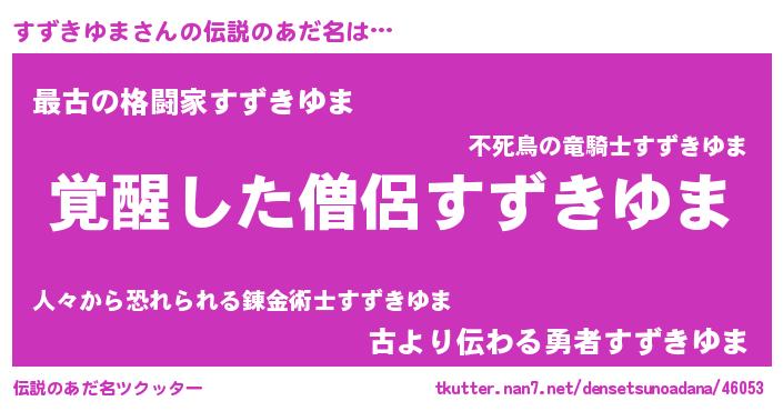 | 男性向けラノベタイトル風あだ名 | 『この素晴らしい世界にすずきゆまを!』 |