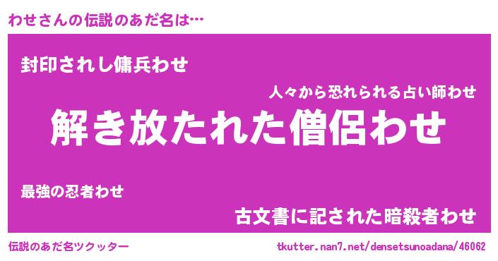 | 意味不明あだ名 | 『とにかく怪しいわせ』『ペロリンわせ』 |