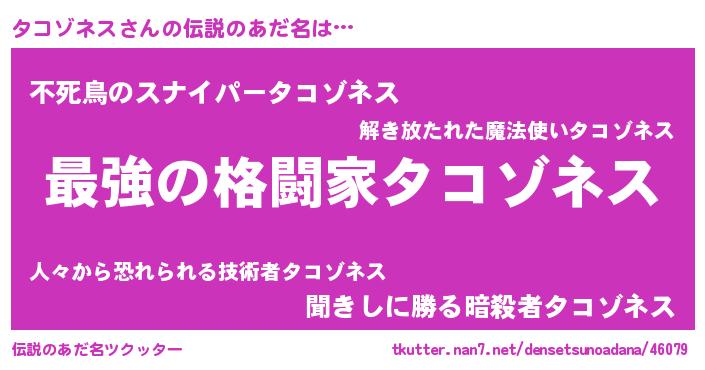 | 意味不明あだ名 | 『タコゾネスフォーエバー』 |