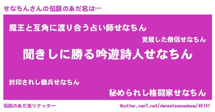 | 意味不明あだ名 | 『住所不定無職せなちん(8歳)』 |