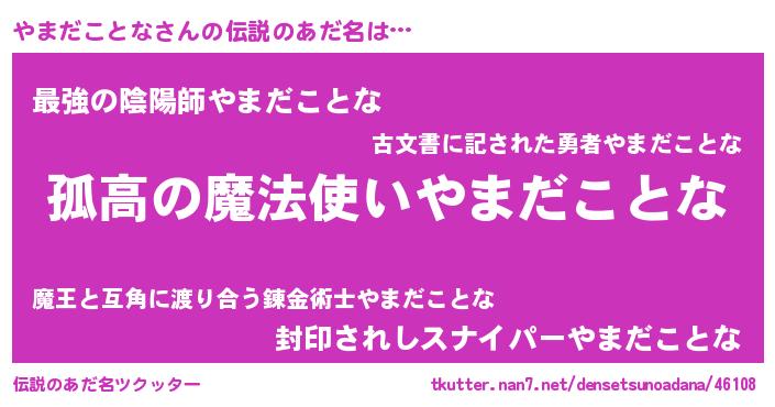 | 意味不明あだ名 | 『とにかく怪しいやまだことな』 |