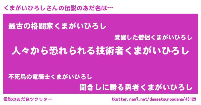 | 女子向けラノベタイトル風あだ名 | 『くまがいひろしなんてお断りですっ。』 |
