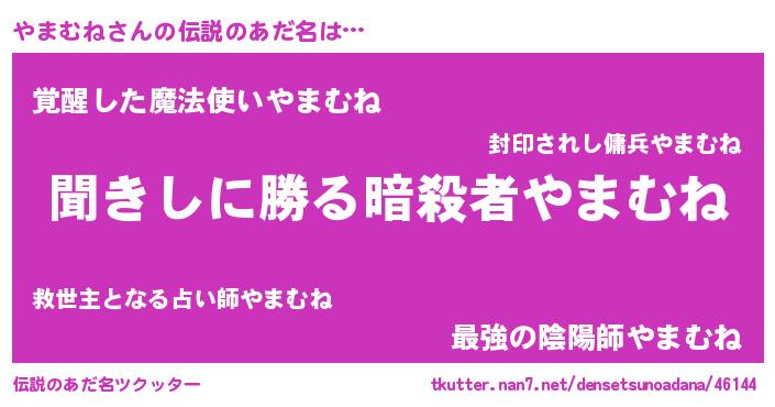 | 女子向けラノベタイトル風あだ名 | 『異世界で失敗しない100のやまむね』 |