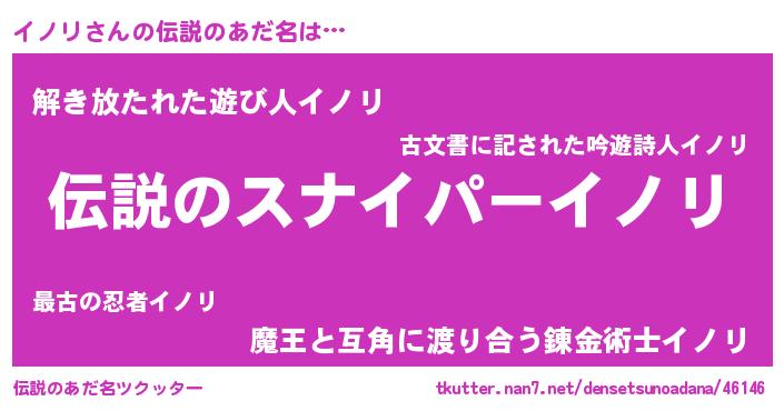 | ヒーロー風カッコイイあだ名 | 『スーパーイノリ』『幻影騎士イノ』 |