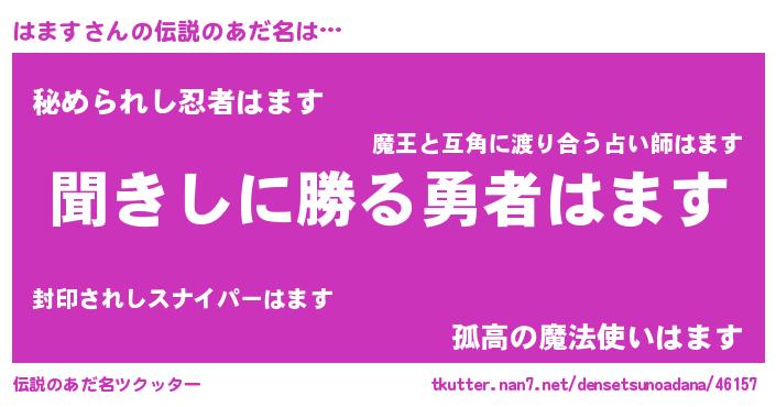 | 男性向けラノベタイトル風あだ名 | 『はますという概念が存在しない退屈な世界 』 |