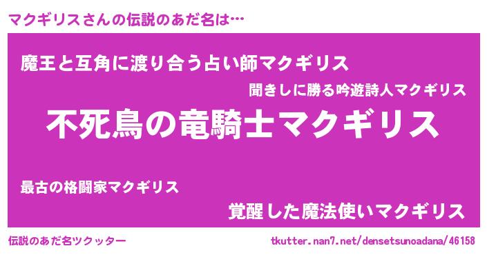 | 意味不明あだ名 | 『住所不定無職マクギリス(9歳)』 |