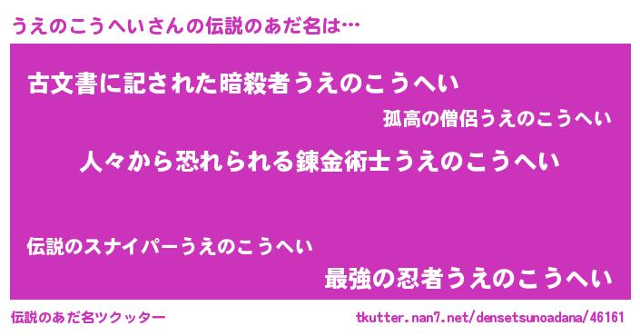 | 意味不明あだ名 | 『住所不定無職うえのこうへい(95歳)』 |