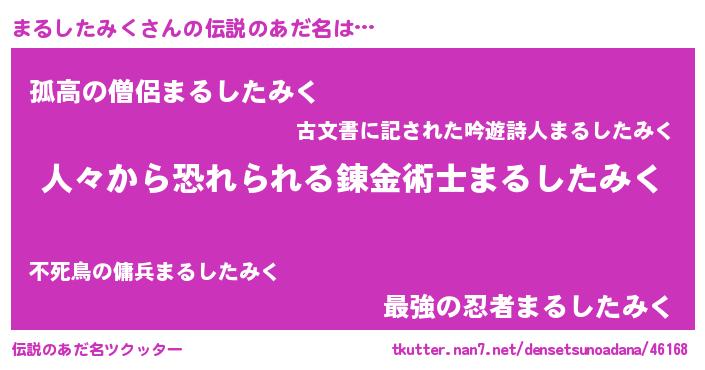| 意味不明あだ名 | 『住所不定無職まるしたみく(86歳)』 |