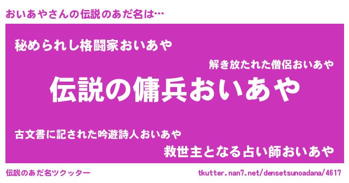 | 男性向けラノベタイトル風あだ名 | 『緋弾のオイアヤ』『オイアヤスレイヤー』 |