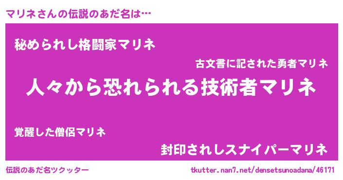 | 胡散臭い通販商品みたいなあだ名 | 『100人中100人が認めたマグネット磁石…その名も「マリネ」』 |