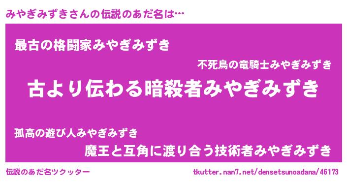 | 意味不明あだ名 | 『自称みやぎみずき』 |