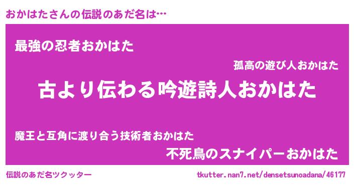 | 意味不明あだ名 | 『自称おかはた』『たけのこ科おかはた属』 |
