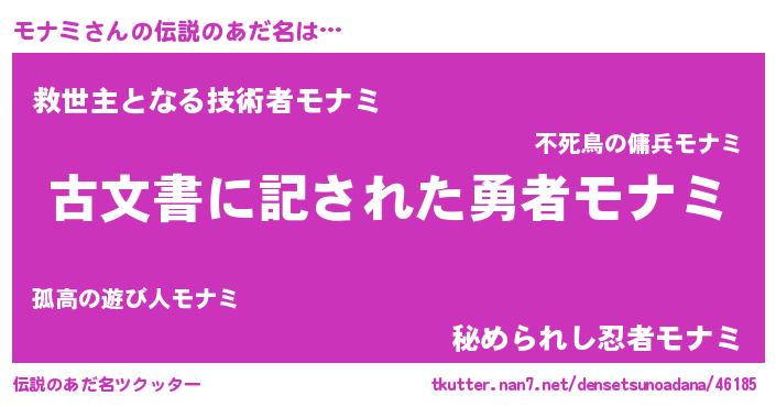 | 意味不明あだ名 | 『永久保存モナミ』『モナミフォーエバー』 |
