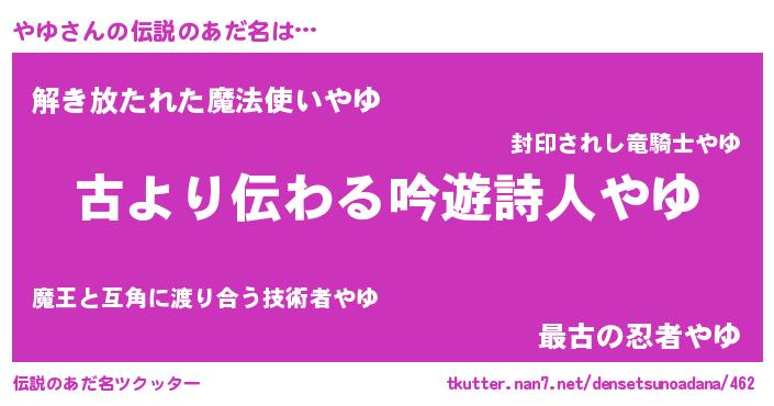 | 意味不明あだ名 | 『永久保存やゆ』『とにかく怪しいやゆ』 |