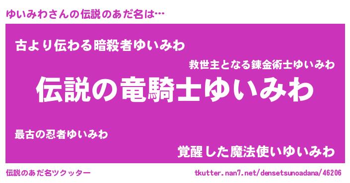 | ヒーロー風カッコイイあだ名 | 『スーパーユイミワ』『仮面ユイダー』 |
