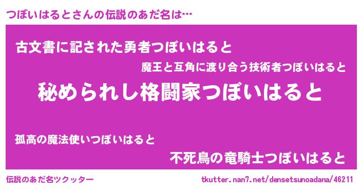 | 意味不明あだ名 | 『つぼいはるとフォーエバー』 |