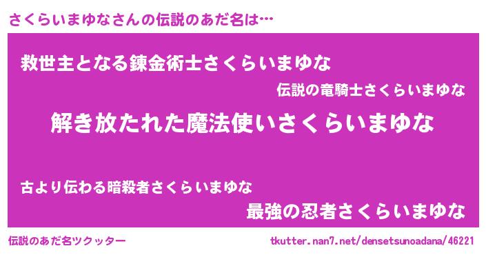 | 意味不明あだ名 | 『とにかく怪しいさくらいまゆな』 |
