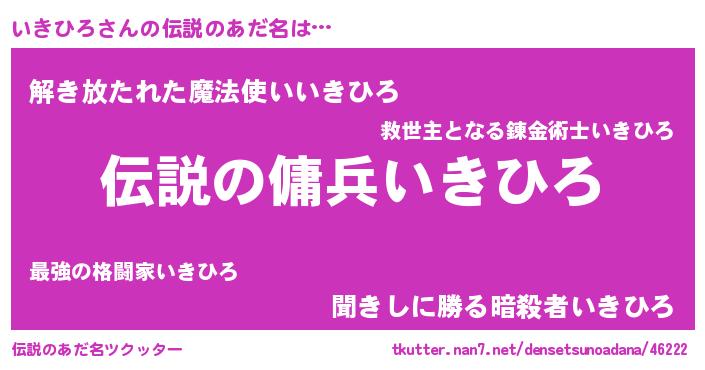 | ヒーロー風カッコイイあだ名 | 『スーパーイキヒロ』『最強戦士イキヒロ』 |