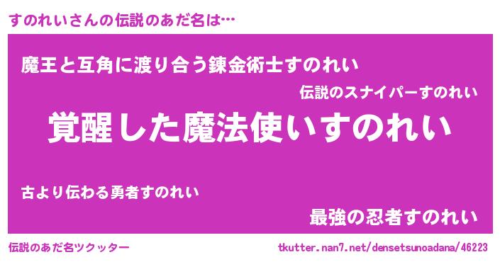 | 男性向けラノベタイトル風あだ名 | 『すのれいの嫁は女の子じゃないと思った?』 |