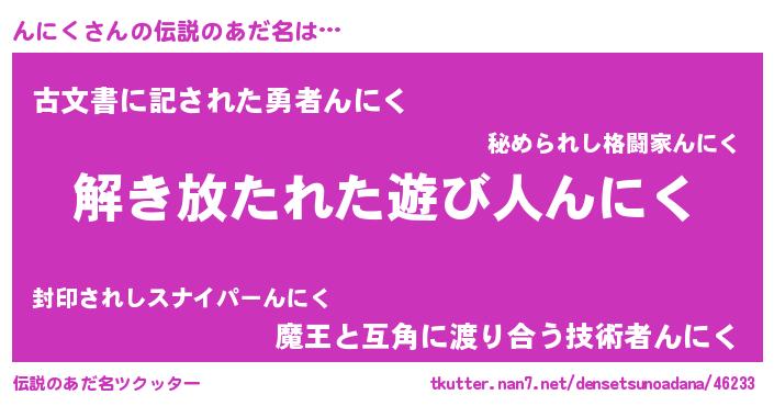 | ポケモン風あだ名 | 『ヒンニク』『ゼニンニ』『ンーニイ』 |