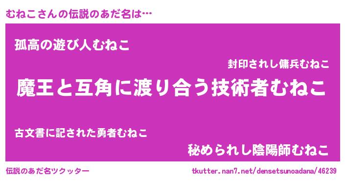 | 意味不明あだ名 | 『眠気覚ましガムむねこ味』『自称むねこ』 |