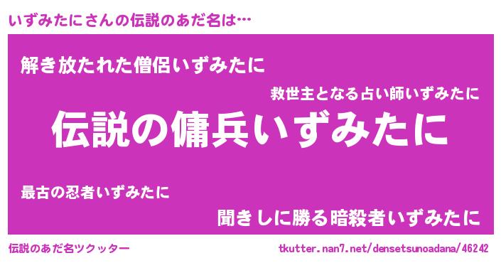 | ヒーロー風カッコイイあだ名 | 『超時空戦士イズミタニ』『仮面イズダー』 |