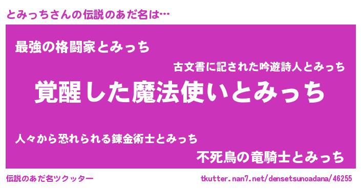 | ヒーロー風カッコイイあだ名 | 『炎刃騎士トミ』『ウルトラとみっちマン』 |