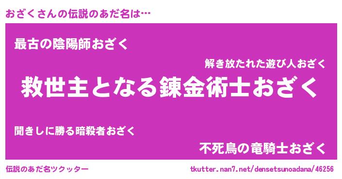 | 男性向けラノベタイトル風あだ名 | 『ノーゲーム・ノーオザク』 |