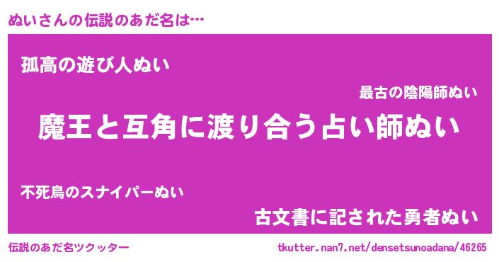 | ポケモン風あだ名 | 『ヌックウザ』『ヒヌイ』『ヌイゴンZ』 |